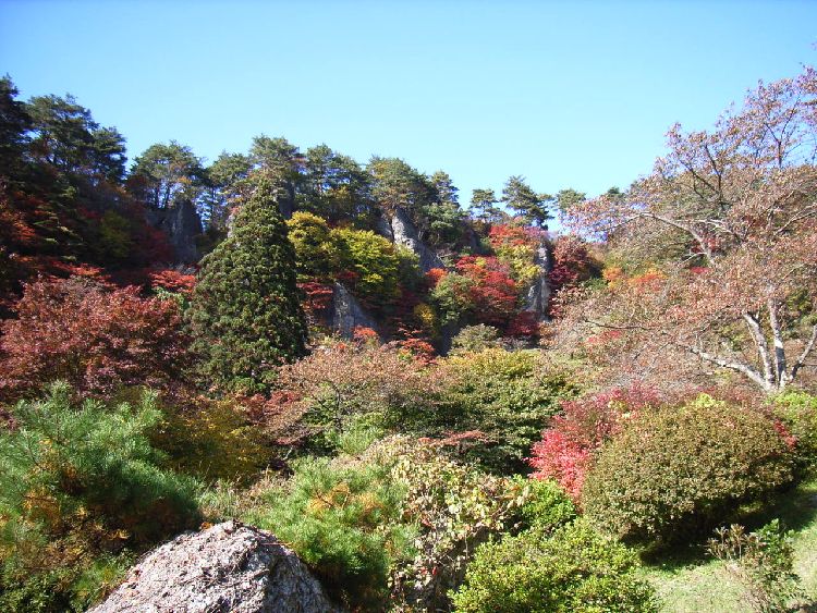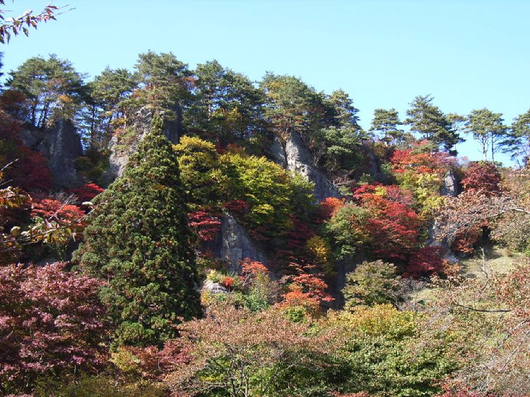 | きみまち阪概要: 江戸時代、きみまち阪周辺は米代川が大きく蛇行し、流れが速く、断崖絶壁が追っていた為、羽州街道最大の難所とも言われました。津軽藩主は参勤交代の際、この難所を無事安全に通過したことを、わざわざ弘前に伝えに出したという話も残っているほどです。明治14年に明治天皇が東北巡行の際、ここを訪れその景観に感動した際、皇后が、「大宮の うちにありても あつき日を いかなる山か 君はこゆらむ」という和歌をしたためられ手紙を出し、ここで天皇の到着を待ったとの逸話から「きみまち阪」という名称が明治天皇から宮内庁を通し正式に通達さられました。その後、公園として整備され、秋田県立自然公園に指定され、春は桜やツツジ、秋は紅葉の名所として県内外から親しまれています。