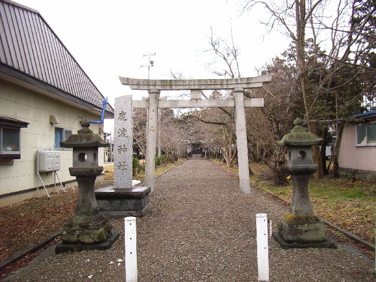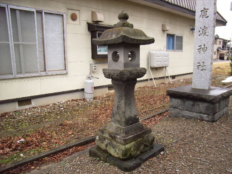 | 鹿渡神社概要: 鹿渡神社の創建は天正年間と云われ鹿渡周辺を支配した国柄氏が城の守り神として鎮座したのが始まりです。文禄年間に館村に遷座し、明治43年に周辺の十数社と合祀して村社として現在地に遷座しました。当初は諏訪八幡神社でしたが合祀を機会に総鎮守となり鹿渡神社と名前を変えました。その様な経緯をたどったせいか、街道からは比較的分かりにくい場所にあり、場所性もあまり感じません。ただ境内には文化7年(1824)の石灯篭を始め庚申塔、境内社などあり歴史と、信仰の深さを感じます。