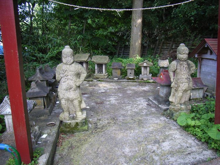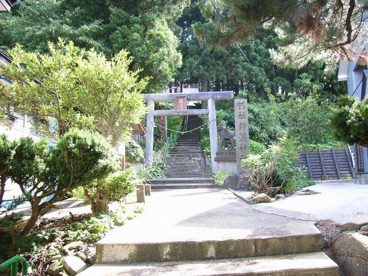 | 釣潟神社概要: 釣潟神社は仁寿年間(851〜4)に慈覚大師が創建したとされています。様は神社ではなく円通山宏大寺と呼ばれる寺院(修験道場)でした。ただ信仰は厚かったようで特に安東氏からは絵馬(能代市指定文化財)や木造が寄進されています。明治に入ると神仏分離の為か山神社として村社として列せられ、明治43年他の神社と併合して現在の釣潟神社になりました。現在の場所は道路が狭くなかなか解り難く、基本的には駐車場もないみたいです。建物はシンプルな構成をしていますが、境内には寺院の名残か小さな金剛力士の石造が多数の石祠を守っています。