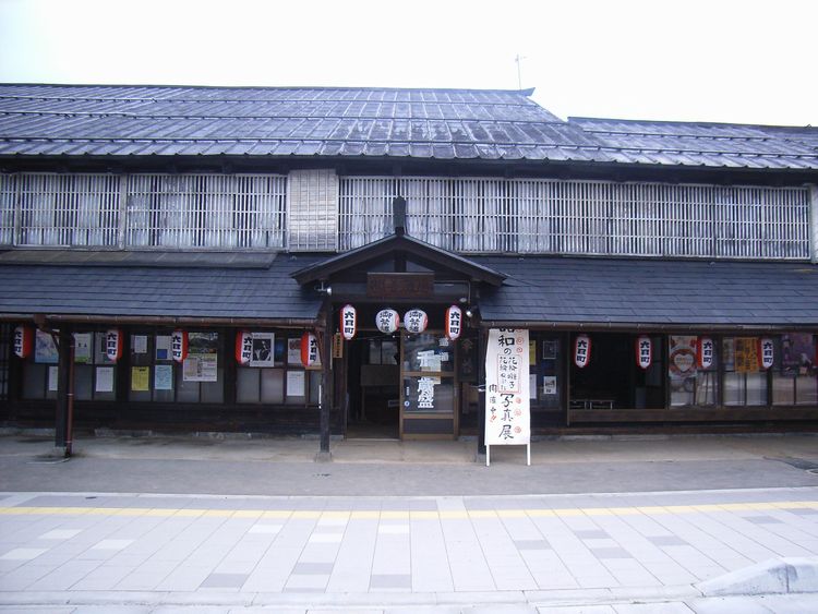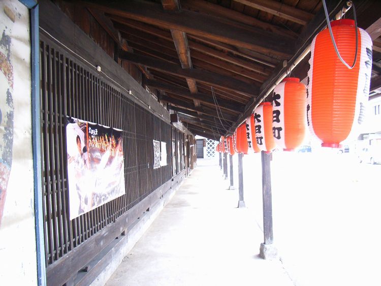 | 旧関善酒店概要: 平成18年に旧関善酒店主屋が国登録有形文化財に指定されました。文化庁によると「県道に西面して明治38年に建てられた商家で,桁行14間の長大な規模を持つ。木造平屋一部2階建,切妻造,平入とし,正面にこみせを設ける。通り土間上部の架構は見事で,全体に技術,規模,意匠共に秀でている。」とあります。木造吹き抜けでは東北最大級といわれて、内部に入ると力強い小屋組に圧倒されます。「こみせ」の保存状態も良く当時の花輪の町並みを思い起こさせてくれるようです。花輪の建物は旧関善酒造の正面の「小田島家」にも言えるのですが、秋田県内には珍しい平入りの町屋が多い町のようです。江戸時代は盛岡藩だった名残なのでしょうか?「こみせ」の建物入り口正面は切妻状になり、正面性を高めつつ、冬には雪が落ちてこないようになっています。