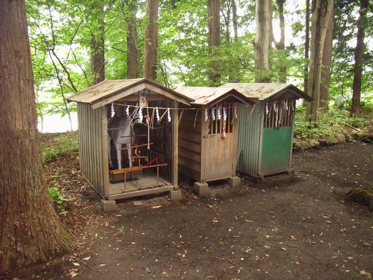 | 扇田神明社概要: 扇田神明社は長治2年(1105)創建と伝えられていて、浅利氏、佐竹氏に庇護されてきました。戊辰戦争では激戦地となり社殿は焼失し、現在の社殿は明治7年に再建したものです。鳥居の正面が社務所で多少違和感がありますが、境内には神楽殿(?)、や奉納された木馬などがあり信仰の深さが伝わってきます。神輿も直接見ることができ、その歴史を知ることが出来ます。扇田神明社の周囲は古木に囲まれ、米代川の川音が響き神聖な感じがします。