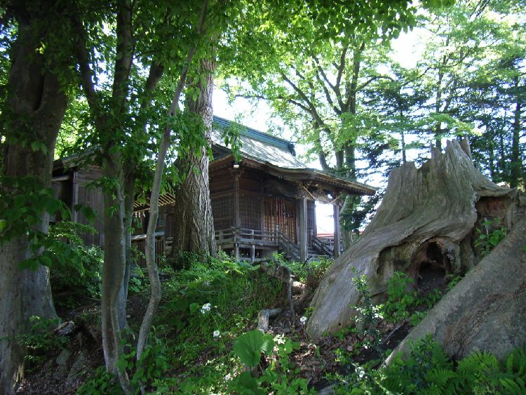 | 古神明社概要: 元々大館神明社の古社地(平安〜江戸初期)とされている所で、現在は大館市の住宅地に埋没し、あまり目立たない存在です。良く見ると地形に段差など見受けられるところからも、当時は周辺からもよく見え産土神としての聖地だったと思われます。段差境からは現在でも湧き水があり水場のようになっていることからも生活にも密接に係わっていたのではないでしょうか。住宅街の中に古そうな石の鳥居をくぐると細い参道が続き、境内は最初のイメージより広く感じます。社殿は小規模ですが境内全体はなかなか古社地の雰囲気が残り、いい空間が広がっています。