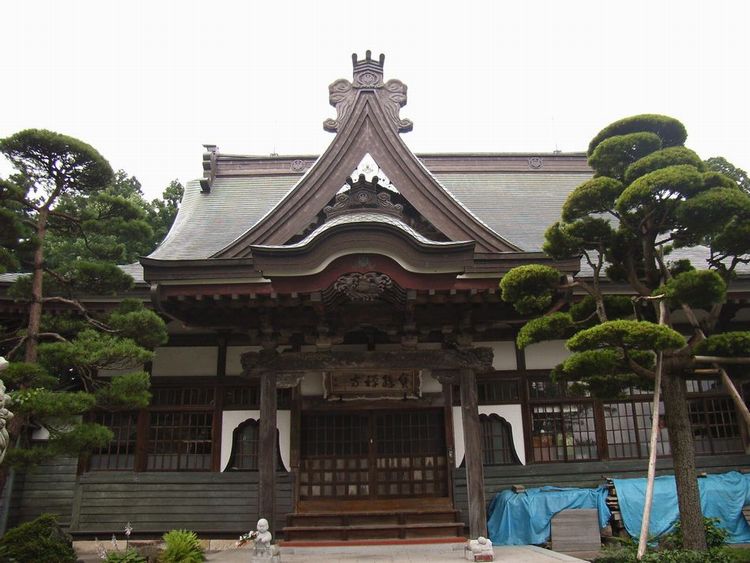 | 宝勝寺概要: 宝勝寺は寛正4年(1463)に創建したとされています。明確ではないのですが綴子を開いた高橋八郎兵衛家と深いつながりあったそうです。現在の本尊は宝永2年(1705)に寄進され、腹部に旧仏体を入れたもので北秋田市の指定文化財です。街道沿いに総門があり、細い参道を奥に進むと山門が見えてきます。宝勝寺の山門は四脚一間一戸の楼門で、屋根が入母屋で壁が朱色に塗られ、かなり重厚感がある建物で2体の金剛力士像が迎えてくれます。元文2年(1737)の創建だそうです。本堂の建築年は良く解りませんでしたが、屋根の千鳥破風が他と比べて以上に大きく、さらに唐破風が付いている為、建物を印象深いものに構成されています。