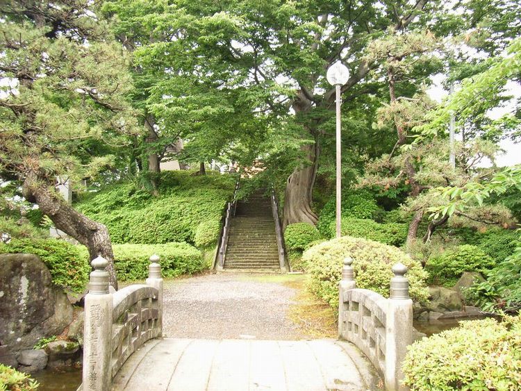 | 仁賀保陣屋(仁賀保公園)概要: 仁賀保氏は戦国時代、現在の院内の山根館を居城にして周辺を支配し3000石を領していましたが、関ヶ原の戦いの際、東軍側の最上氏に従った為、1万石の大名に格上げされました。その後、象潟に本城を構えましたが相続の際、長男に7千石、二男に2千石、三男に1千石を分地し、大名格から外れ、平沢周辺を二男三男分の計三千石格の陣屋を現在の仁賀保公園に築きました(長男の家系は後に断絶)。二男三男は直参旗本として江戸にいた為、普段の陣屋には十人前後の家来が常勤していたようです。陣屋内部は役所、牢屋、米蔵の建物が3棟あり西、北側を堀で囲んでいました。 現在は掘の一部が残り、その内側の高台に仁賀保神社や斉藤神社が鎮座し公園として整備され仁賀保公園となってにかほ市民に親しまれています。