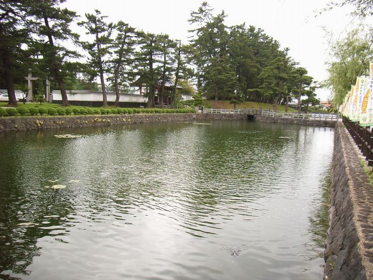 | 本荘城概要: 本荘城は尾崎城とも鶴舞城とも呼ばれ楯岡豊前守満茂時代ではかなりの規模の平山城だったそうです。その後、本多正純が宇都宮から5万5千石で移され佐竹家の預りの身になってからは、六郷氏が2万石で入封しました。現在では堀の一部や本丸の枡形が良く残り当時の様子が窺えます。ただ石垣や、表門は模擬のようですが派手さがなくいい感じでまとめています。内部の建物も和風で統一(本丸の休憩所は意見が割れそうです)されています。現在は旧本丸を中心に本荘公園として市民の憩いの場となっています。