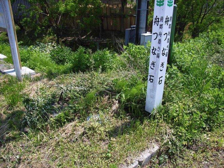 | 船着場概要: 船着場は案内板によると「江戸時代の物資の輸送は、子吉川を利用した川舟での運送が中心であった。沿岸には多くの船着場があり、中でも滝沢郷の中心地にあるこの前郷船着場は、おおいににぎわった。この地に運送店が開業されるようになると、本荘古雪港から矢島行きとして積荷された物資はここでおろされ、昼夜なく矢島に急送された。子吉川を下る時は「下り荷」と称し、米、酒、木炭などを積み、本荘までの約二十キロの区間を一時間半程で運び、また子吉川を上る時は「上がり荷」と称し、塩、鮮魚、干し魚、油その他の雑貨を積み、帆をあげ順風をはらんで快走したが、無風や逆風の時は帆をおろし、舟に長い綱をつけて舟方が肩にかけ、河岸をはらばうようにしてさかのぼるため、一日がかりの重労働であった。米は一そうの舟に八十から百俵ほど積まれた。この川舟運送は、鉄道開通の大正の末まで続いた。」とあります。
