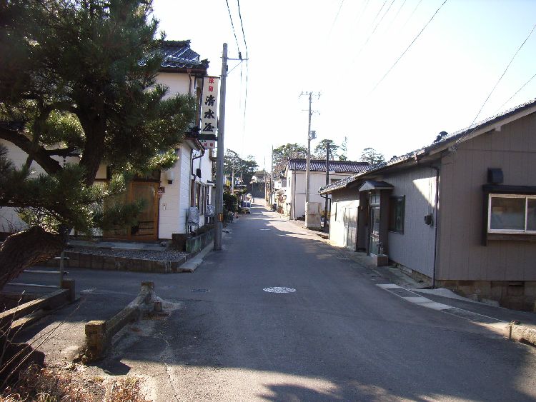 | 小砂川集落概要: 小砂川集落は羽州浜街道沿いにある集落です。前面が日本海に面する崖で背後が山が追っている為、農業には適していなく、製塩や漁業などが主な産業でした。羽州浜街道最大の難所である三崎峠を控えている為、宿場としても機能していたようです。現在は集落の中央が旧国道が通っていた為道幅が広く,又商業の集積が少ない事などから旧街道のイメージはあまりありません。ただ、山沿いの家並みは地形を巧みに読み取り、坂や階段、石垣などが残りなんとも言えない風情のある町並みが残っています。