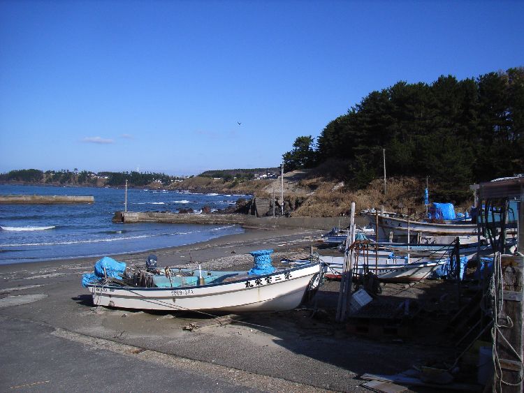 小砂川漁港概要: 小砂川漁港は本集落は崖に面している為、三崎峠よりに少し離れています。漁港周辺には、関係者の住居と思われる家々で小さな集落を構成しています。漁港の規模は象潟や金浦と比べても小さくまとまっています。