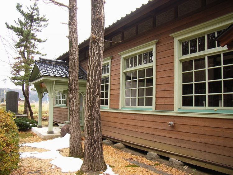| 大倉沢報徳館概要: 現在の建物は昭和5年に建てられました。木造平屋建てで内部は和風で、観は一部洋風の建物です。屋根は瓦葺きで和風でありながら、外壁は下見板張り、窓も格子を基調として洋館を意識しています。玄関ポーチは特に凝っていて浅緑に塗り柱廻りは意匠に力が入り、建物の印象を決めています。このようなスタイルは隣接する長坂集落に見られ浅緑に塗られた下見板張りの建物が今でも数軒見ることが出来、周辺に何らかの影響があったと思われます。