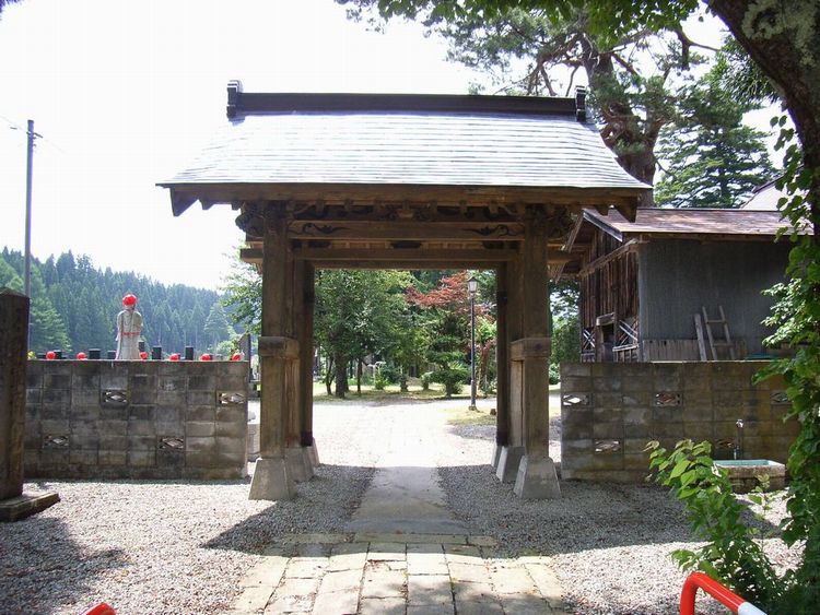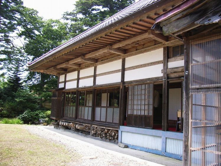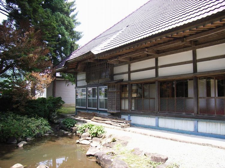 | 慈音寺概要: 慈音寺は元大井氏家臣金子氏の館跡に建っています。その遺構の跡か山門の前には石垣のような石積みがありました。元々の本堂は天明年間(1781〜9)に焼失して、現在は庫裏を改修したものだそうです。建物は朴とつとして洗練さはありませんが、それが返って重厚で誠実なイメージを与えます。屋根の形や軒の「せがい」などから見ると元々は屋根は萱葺きだったかも知れません。当時はもっと重厚感があったと思われます。矢島領内の33観音や笹子騒動の義民達の位牌なども祀られていて、周囲からは、かなり親しみと信仰の対象になった寺院のひとつだと建物からでも感じ取れます。