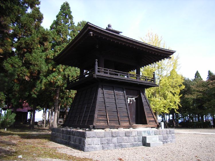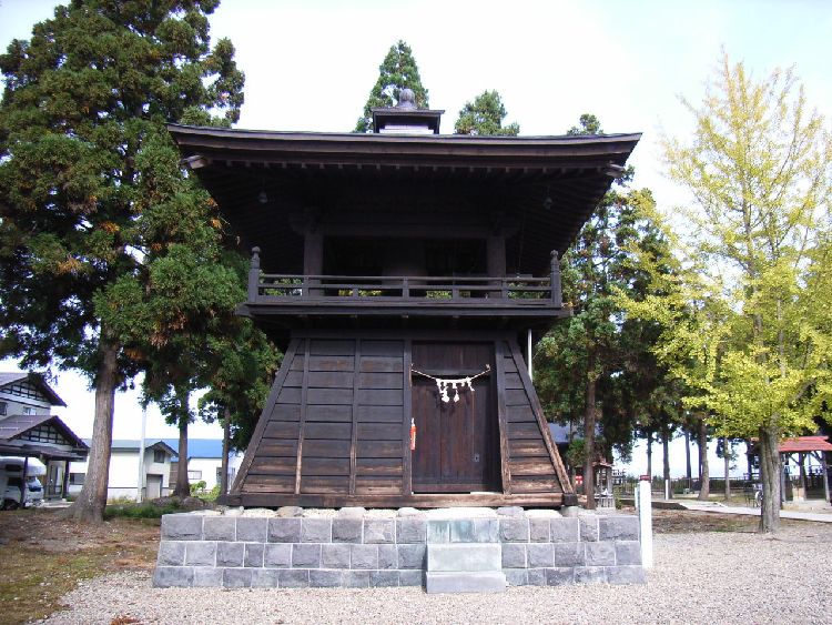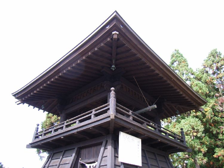 | 鐘楼概要: 鐘楼は三輪神社境内の一番手前にある建物で、案内板によると元禄3年(1690)に建立とあります。江戸時代の紀行家菅江真澄がこの地に訪れた時は境内の東側ですが、すでに鐘楼がありました。建物的にはシンプルに構成されていて、内部は見ることは出来ませんでしたが、1階床は土間、天井は根太が表しになっているそうです。2階の床は拭板敷床で天井は合天井になっています。正面、側面とも一間で直線の袴腰が付いています。神社の境内に何故に鐘楼があるのか不思議な感じもします。神社の方が歴史が古い為、神仏混合か、何かの理由で鐘楼が移設されたか、神社の方が移設されてたか(寺院跡へ)のどれかだと思うのですが・・・。(元々吉祥院という寺院があったそうで、その遺構と思われます)羽後町指定文化財。