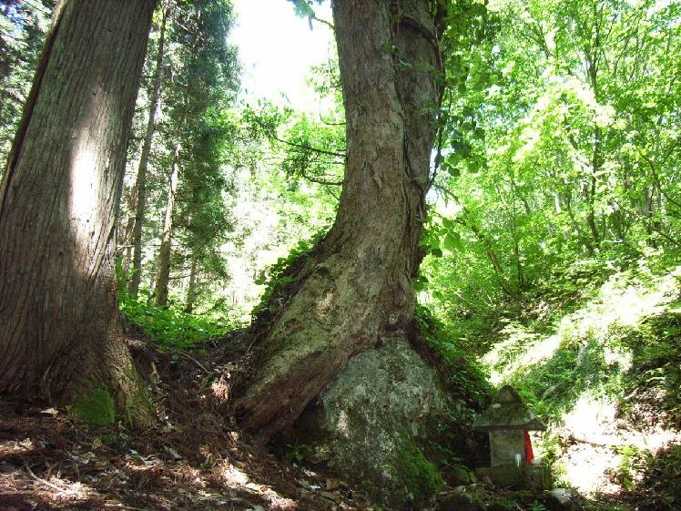 | 七高山・七高山神社概要: 七高山は西馬音内の北東部にあり、標高304mの中世に山岳信仰が栄えた羽後町を代表とする信仰の山です。麓には当時、七高山神社と関係が深かった清岩寺が改宗開山した龍泉寺があり、江戸初期と云われる本堂があります。清岩寺は七高山神社と共に中世、西馬音内を含め周囲一帯を治めていた小野寺氏の崇敬されてきましたが、戦国末期、最上氏が西馬音内城を攻め小野寺氏が敗れた後は一時衰退しました。龍泉寺近くの脇道をには石造の鳥居が見え更に進むと山道の参道をなり、30分ほどで七高山神社に着く事が出来ます。境内には七高山と刻まれた石碑と、当国三十三行塔−文化3年と刻まれた石柱が建てられています。傍らにはかなり浸食が進んだ33観音と思われる石仏が並んでいます。社殿は3間、2間の拝殿とその背後に本殿を加えたもので、屋根廻りは改修した後が見えるものの、基礎や柱廻りはかなりの古材も見え、歴史を感じることが出来ます。さらに奥には「奥の院」と呼ばれる所には当時の山岳修験道場の跡や佐藤信淵の逸話も残り、羽後町指定史跡となっています。又、「羽後町郷土かるた」には七高山に咲く桜が農家の花ごよみにもなって、信仰の対象だけでなく生活に常に密着していたことを教えてくれます。