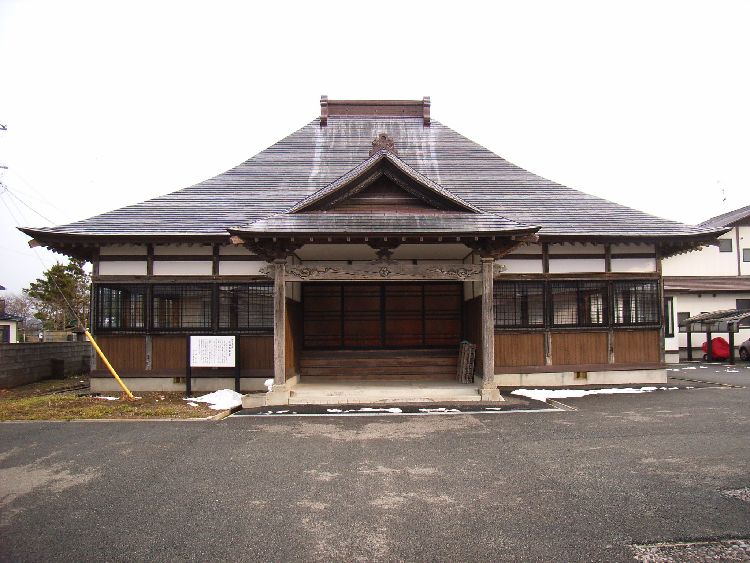 | 大福寺概要: 大福寺は、案内板によると「天正年間兵火に合った一向堂は慶長17年(1612)夜叉袋村に再建されたが、寛永12年(1635)6月に現在地に移転して寺名が変わった。歴史のある浄土真宗大谷派の寺院である。昭和24年の修理や平成8年の改修などによってある程度変化しているが、正面約16m、側面約14mの入母屋造りの本堂は江戸時代初期の建築で、左右対称の2列6室の内陣、外陣、余間の欄間などにある物語を主題にした極彩色彫刻など見るべきものが多い。向拝は後補のものである」とあります。五城目町指定文化財になっています。