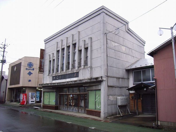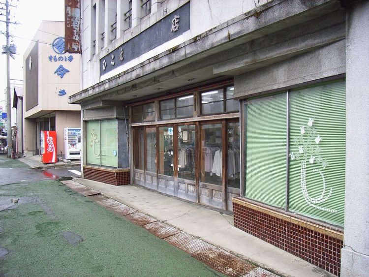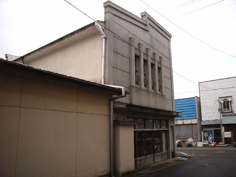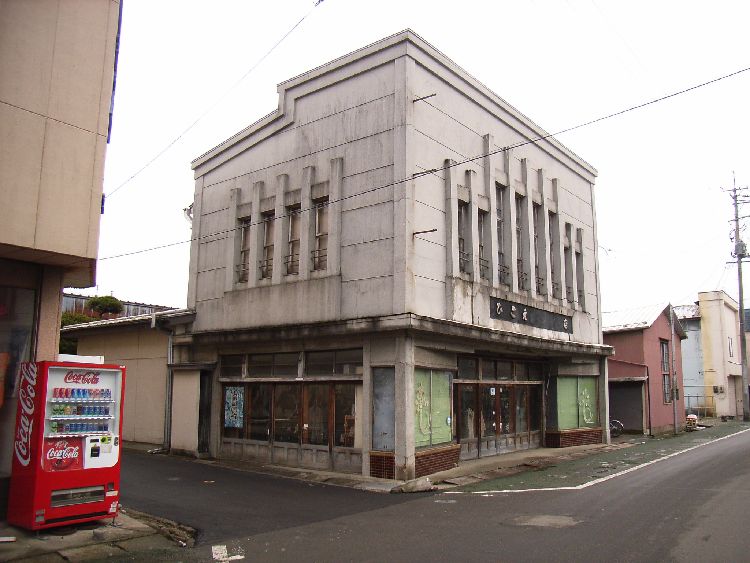| ひこえ堂概要: 五城目町には看板建築と言われる外壁をモルタルや金属板(主に銅)で装飾しそれ自体が看板のようになっている近代建築が多くあります。これが五城目町の町並みの大きな特徴と言えると思います。まだまだ文化財的な価値は認められていませんが、これらの建物の良さを生かした町並み整備を進めていくのも面白い試みだと思います。「ひこえ堂」や「えびや」は代表的な建物ですが、かなり多くの看板建築がまだまだ残っています。
