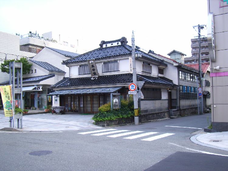 | 高砂堂概要: 高砂堂は明治27年(1894)に大日本帝国政府から菓子製造営業免許の鑑札を取得したことから始まります。明治35年に「高砂堂」と名を改め現在地へ新築しました。現在の建物は大正7年(1918)に建てられたもので、木造2階建、寄せ棟瓦屋根、平入りです。外壁は白漆喰で塗り固められ、江戸、明治の秋田の町屋とは一風変わった様な印象を受けます。同じ和風の建物ですが、大正時代という時代が求めたハイカラなイメージを現代にも感じる事が出来ます。内部は特にその特徴が顕著に現れ天井折り上げられていて緑色の鉄板には花模様が施されています。廻縁は幅広く装飾がかなり細かく刻み込まれ、より高級感が漂っています。床は男鹿石を利用し、ショウケースは大理石とメノウが使用されています。設計、施工は秋田の宮大工 藤本東三郎で、平成7年に道路拡幅工事の際、曳屋を経て平成12年に国登録有形文化財に指定されています。