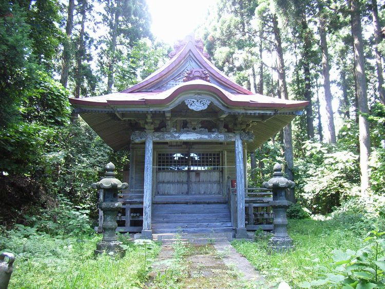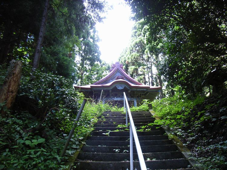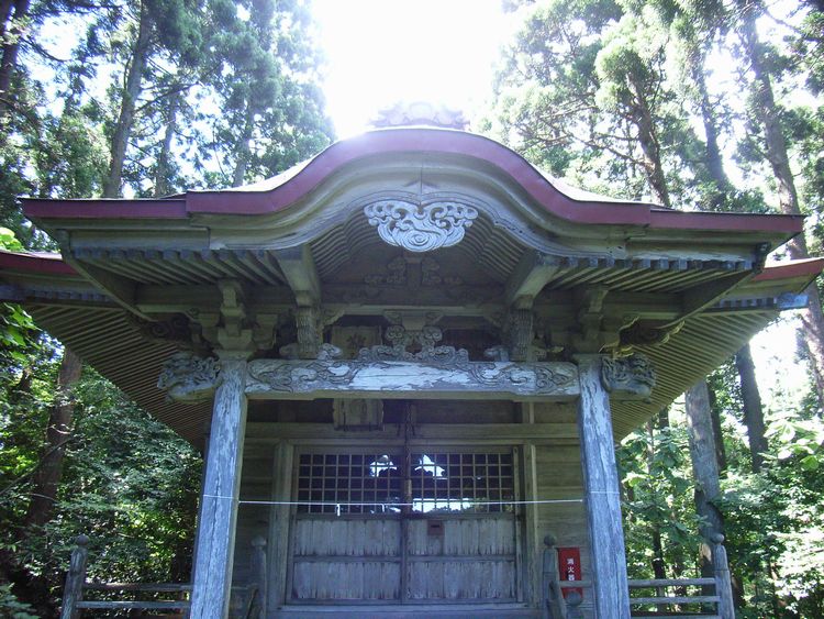 | 増川八幡神社概要: 増川八幡神社の創建は亨徳4年(1455)、安東太郎平泰春が建てたと伝えられています。軒札(男鹿市指定文化財)には延徳3年(1491)の年号が書かれていています。内部にある宮殿(県指定文化財)は直接見ることは出来ませんが、軒札にあるように室町後期の建物だそうです。案内板によると構造形式は、一間社正面入母屋造、背面切妻造、妻入向拝一間唐破風造になっているそうです。安置されている木造薬師如来座像は円空作とも云われ、秋田県指定文化財になっています。