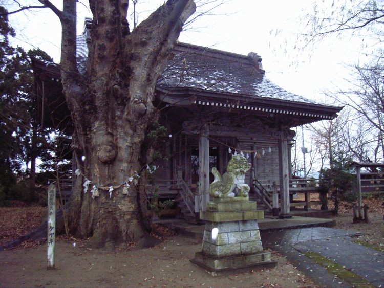 | 月山神社概要: 月山神社は羽州街道から少し奥まった所にあり初めての人にはわかりにくいかも知れません。創建は正治元年(1199)とされ、元々は阿弥陀如来を本尊としていた神仏混合の建物です。現在の建物の年代は解りませんでしたが、本殿は仏式の雰囲気は感じられます。軒下には4体の力士像が力強く屋根を支えています。境内には天然記念物であるケヤキや月山神社にちなんでなのか「狛兎」などがあり興味深い建物の1つです。社殿の大きさや雰囲気からも大久保周辺の信仰の対象になっていたと思われます。