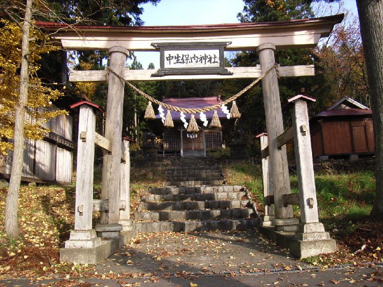 | 中生保内神社概要: 中生保内神社の創建はよく分かりませんでしたが、平将門の三女である夜叉姫が持参したといわれる延命地蔵尊を本尊として父、平将門と母、辰子を祀る為、堂宇を建立したのが始まりという伝承が残っています。大正4年時には大山祗神社と称していたようで、祭神も大山祗神を筆頭に5柱あり、後に愛宕神社を合祀しています。