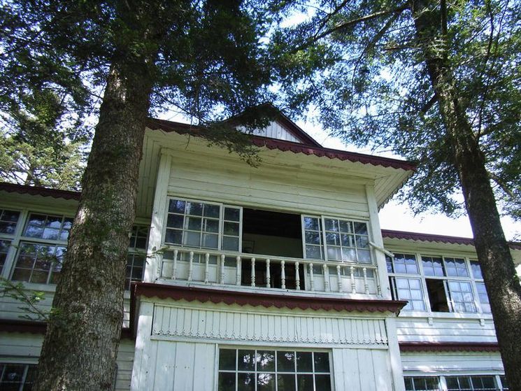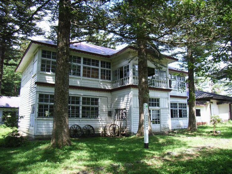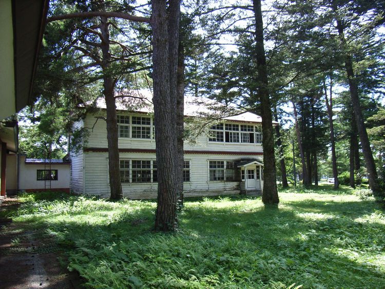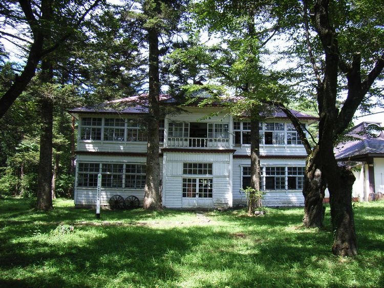 | 旧千屋小学校本堂分校概要: 旧千屋小学校本堂分校は明治45年(1912)に建てられた木造2階建ての建物です。昭和44年に現地に移築され「千畑郷土資料館」となっています。白く塗られた下見板張りの外壁が印象的で、近代洋風建築の特徴である、軒回りのバージボードも設えています。玄関部分は2階共張り出していています。当時の学校施設の良く見られる形の1つで、多分旧登米高等尋常小学校校舎のようなバルコニーだったのかも知れません。その他は昭和44年と比較的早い段階で移築されている為、当時の形態が比較的良く残り風景とも溶け込んで郷愁を味わえます。ただ、内部の展示資料がかなり煩雑になっているので建物保存を特化するような方法を取った方が良いような気がします。