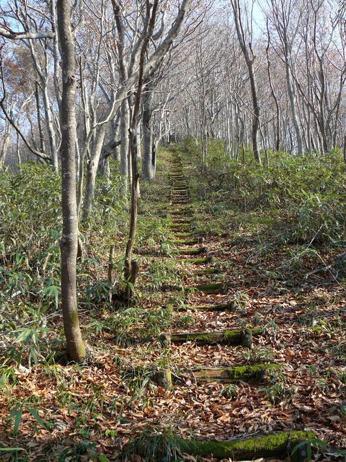 尾根に入ると勾配がきつくなりますが、階段が整備されていますので比較的楽に登れます。